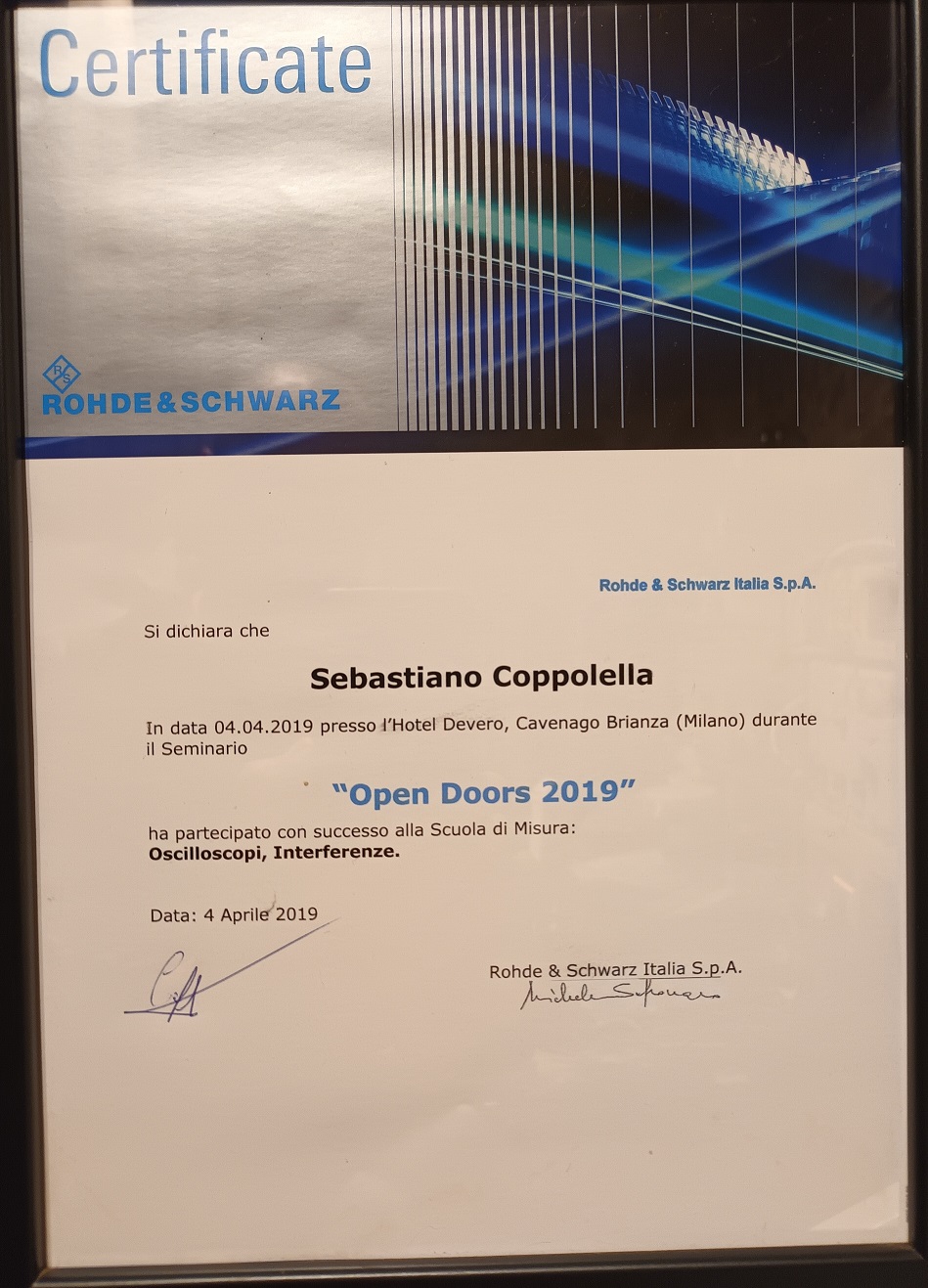 Attestato scuola di misura R&S - Interferenze e radiolocalizzazione: